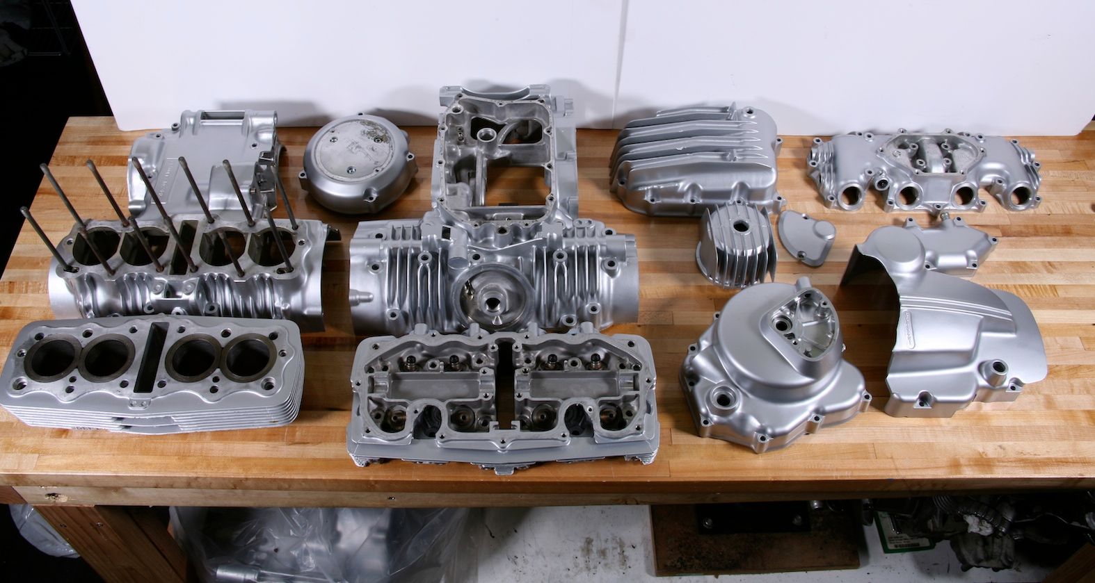 To help the guy out, is there anything that can be done to get rid of the sand blasted effects on the engine to smooth it out again? Putting it on a buffer would do the trick but you couldn't get into all the crevices and angles required to make it look uniform. What a long process to do all that by hand.. if possible at all?
