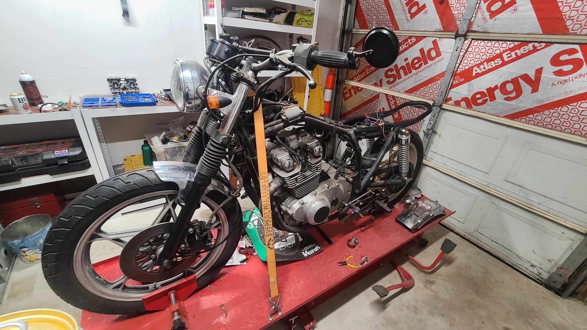 After getting everything cleaned, and tank was cleared of the surface rust after sitting for a while. Cleaned the petcock, carbs, and gaslines. All of this seems to be clean and seals are all good that i can tell. I have good compression from the cylinders and good spark on the plugs on both sides. But there seems to be an issue with one cylinder firing really lean. The idle is super high when i start the bike, and really low after warming up. I cleaned up the spark plugs and verified again that spark was good. Both carbs are getting gas and i know the floats are working. But when i hit the throttle it accelerates very slowly. Once i get moving its as if one side is not firing as i get no acceleration. But then *BOOM* it accelerates hard for a split second, and bogs right back down to the slow acceleration again. I cannot find any airleaks that i can see. I tried spraying the boots connecting the carbs to the engine, but it does not rev when sprayed from either side.