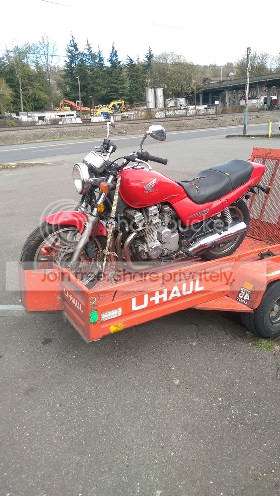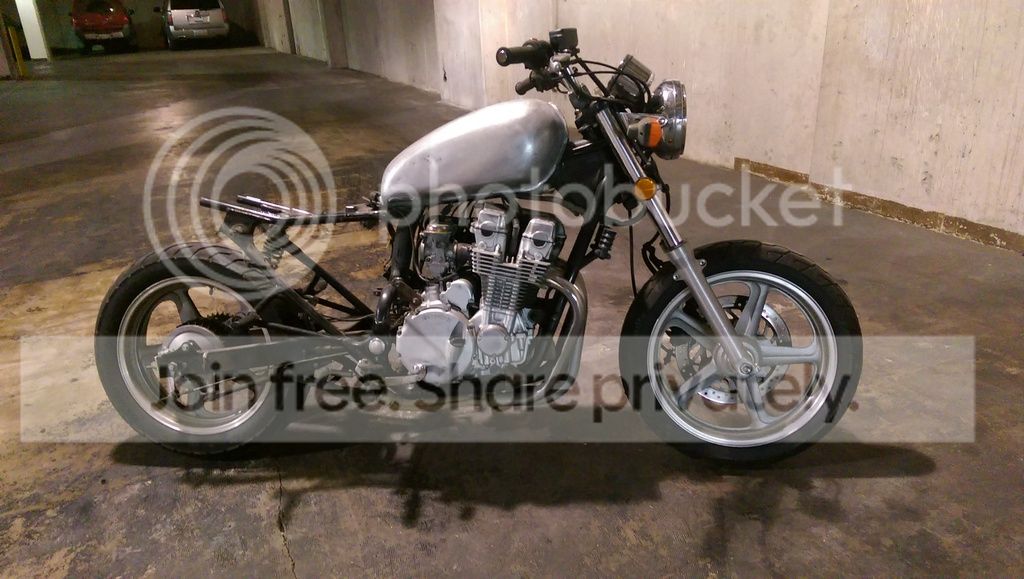 After a bit of confusing bartering I ended up buying the bike for $1000. It needed new tires and had a big dent in the tank but otherwise it was in pretty good shape. I love the look of the old CB's and CX's but I really didn't want to deal with maintaining a vintage motorcycle. After spending a little time on DTT I knew that I could turn this less than beautiful CB750 into something cool.