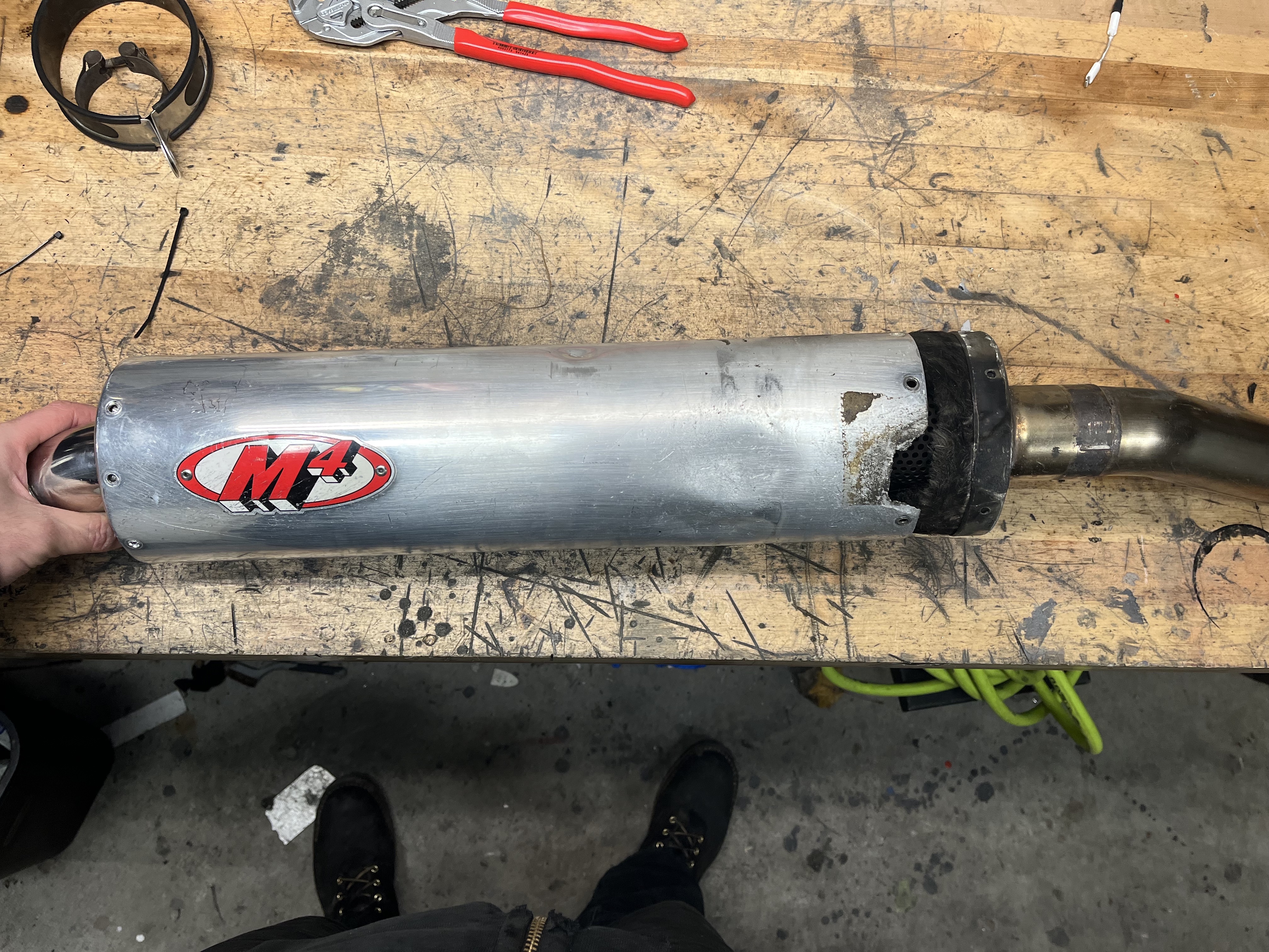 I picked this bike a year ago. It's definitely seen better days but there are some nice parts on it. Last spring I went through the wheels, brakes, forks, and threw new tires on. Did some track days this summer/fall while somehow riding in the rain each time! This bike has not been overly reliable at the track but nothing failed that kept me from riding after some fiddling about. The wiring is pretty bad, some splices merely held together with tape and prayers. I'm going to do a proper race harness, rebuild the shock and a few other things to ensure its reliability. I decided at that point its not that much more effort to tear it down to it main components and inspect everything since I don't trust whoever maintained this bike previously. The decision to tear it all the way down plus my hatred for the current paint job is going to see me paint and powder-coat a few things. Not going to be a fancy job since if i do anything nice it will probably guarantee that I crash on the first lap next season. I really don't like the silver paint on the frame. should be a pretty simple refresh mostly for some peace of mind and some reliability....Also cool paint job.