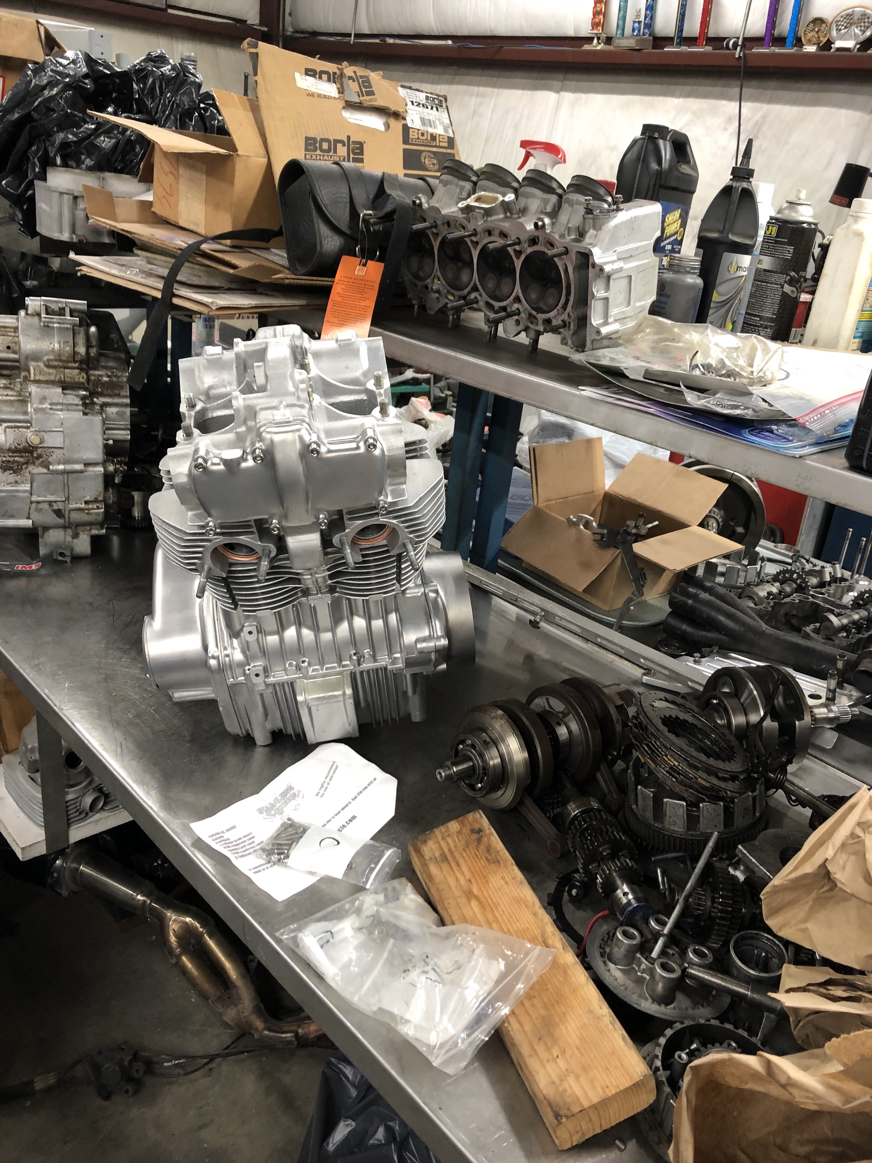 When I left off I was riding high, I'd found help and had dropped off my motor at the guy's place that was recommended. His shop looked great, out in the edges of Austin. He had a lot of motorcycles out there that looked like customer bikes and he seemed pretty legit. Well it's been almost a year and I still don't have my motor. I paid him $500 up front to help cover costs and the only time I hear from him is when I pester. I told him a couple weeks ago that I just want to get my motor and I don't care if it's done and he sent a picture and said he would wrap it up asap. And then two weeks go by and I hear nothing. I'm getting worried that I'll never see the thing again. I'm also worried that this job is going to cost more than expected. I've been asking for a price since day one and have only gotten a price for vapor blasting, honing the jugs and fixing a valve guide. On the plus side, the picture that I got a couple weeks ago looks pretty great. So there is always that. I haven't really done much to the bike in the meantime, because I wanted to make sure I had a motor. I knew this was going to take time to do, but this is pretty ridiculous.