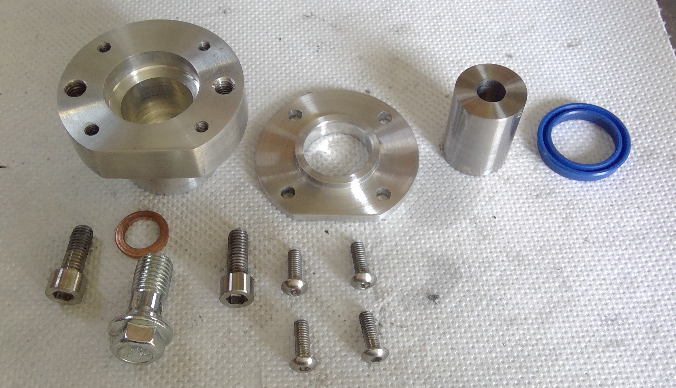 The slave sits inside the cover near the sprocket and chain, so, its a rather dirty environment. There was imsuficient space to add a dust seal. Instead I turned up a 3mm cover which also doubles as a seal stopper, stopping the seal from popping out.