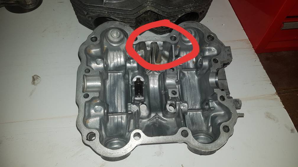 Here im guessing the PO has tried to smooth out the pitting on the combustion chamber, now i dont know a great deal about engines in general but the engine isnt going to run evenly if the combustion chambers arent the same size, correct?