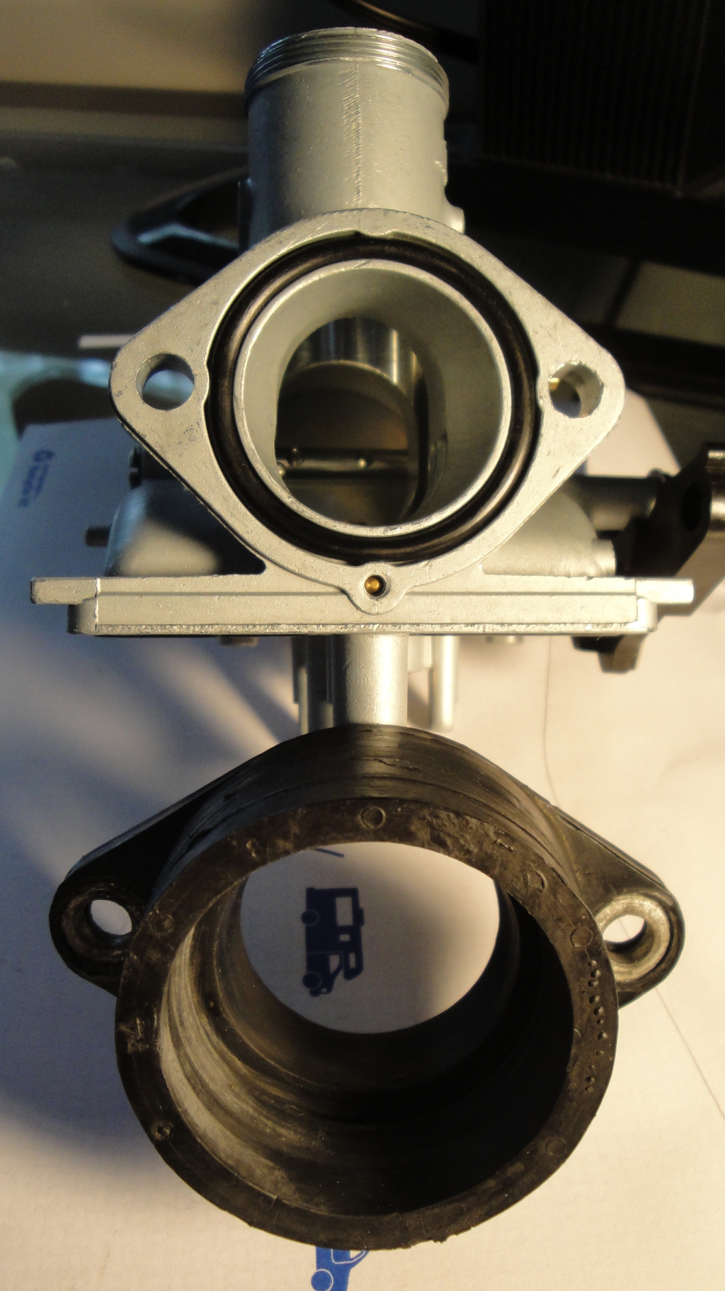Anyway, I quickly discovered that the flange holes on the carbs don't align with the holes on the engine. And the stock carb adapter boots can't fit the flange in any way.