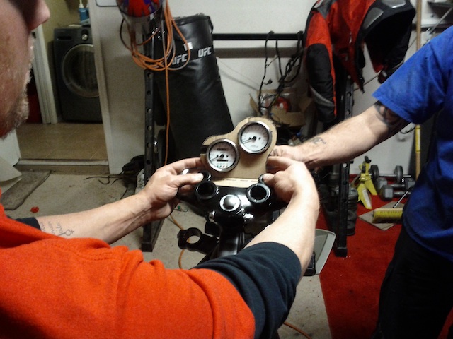Working on doing the gauges staggered a bit. Need to get the headlight brackets cut and cleaned up before we can really see how it will look.