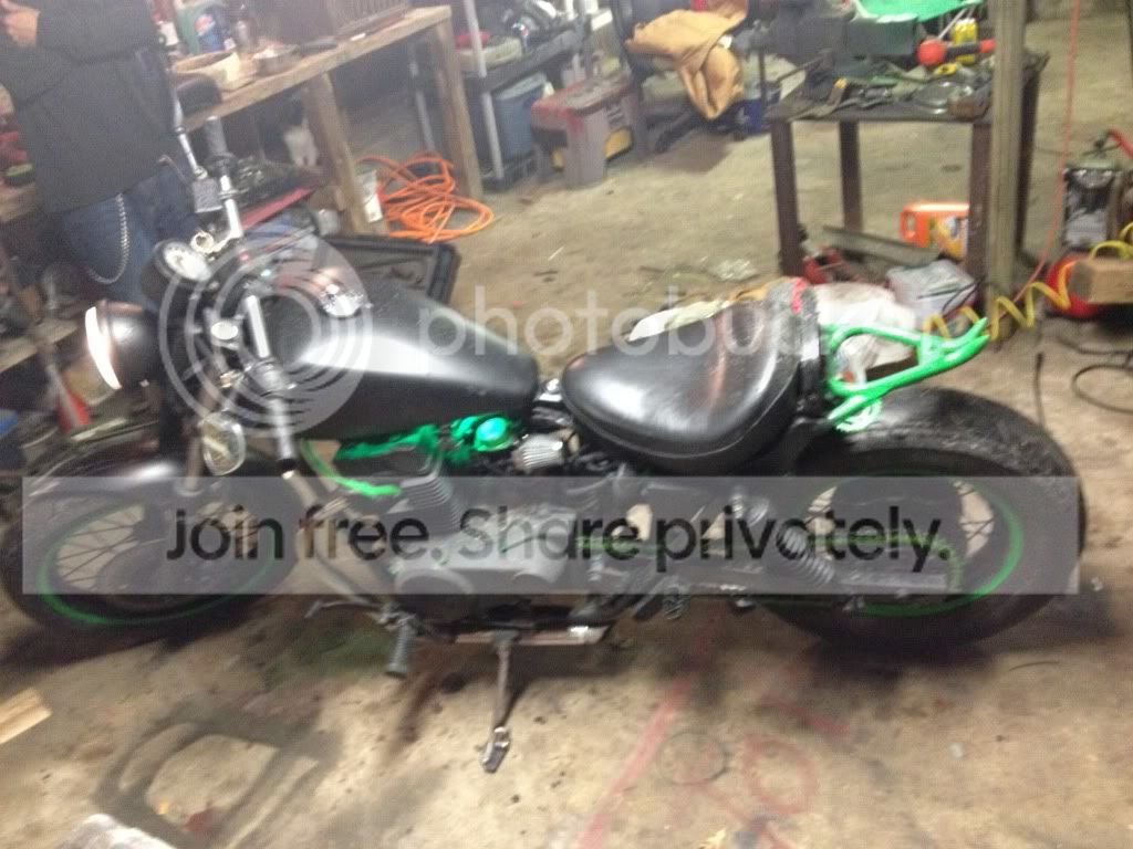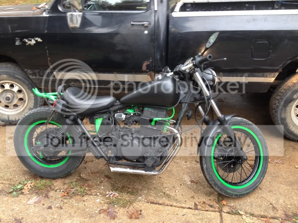 A guy I work with wanted to do some maintenance on the rebel,fork seals,chain,neck bearings,etc. but being me I can't leave well enough alone,lol. Here is how she started