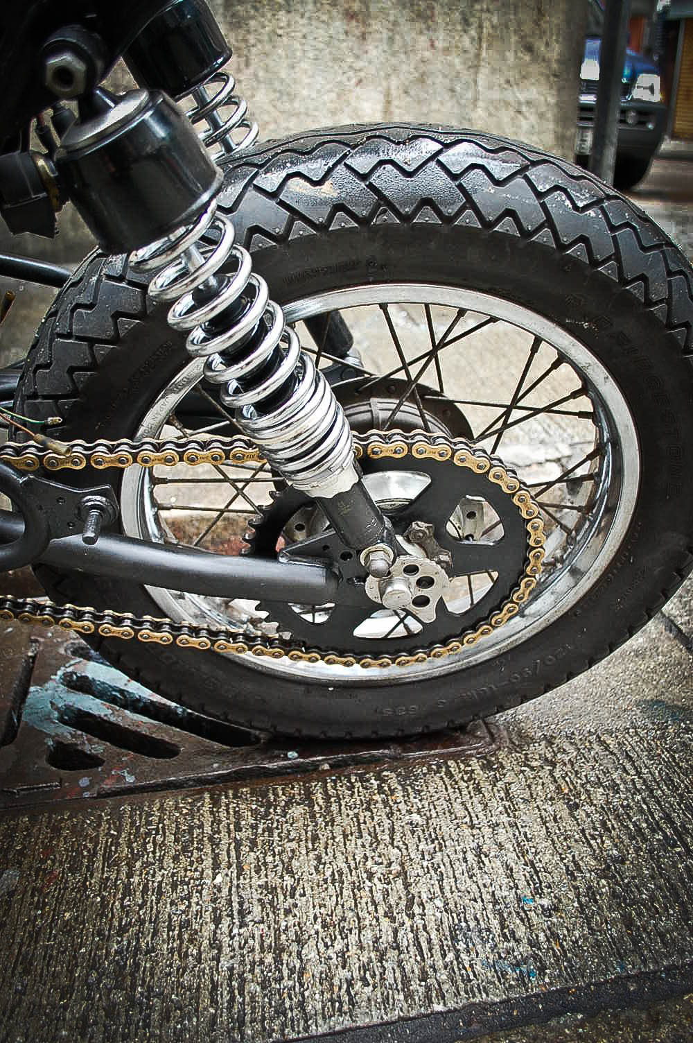 mrwolf said:ok guys here is an update. i finally have a roller. got the drums polished up, rebuilt and re-jetted the carb have the new rear shocks mounted with new bushing swingarms, front forks painted and gaitors (forkboots) on. my mate managed to get the dent out of the tank with compressed air (don't have a pic, but if you look at the previous pics there is one with the tank lying next to the bike and you can see the dent, previous owner put a sticker over it, as they do). super stoked it came out because it was a fucking huge dent, busy prepping the tank for paint now.