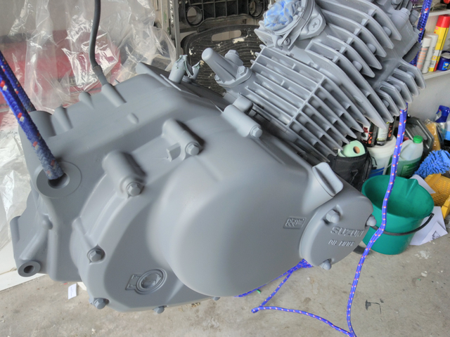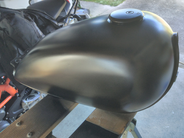 Next step was prepping the tank. I looked at soda blasting it, but to be honest it was already in pretty good nick, so just some elbow grease, steel wool and a sand and it was ready for painting. Here is used VHT again with their Engine Enamel products.