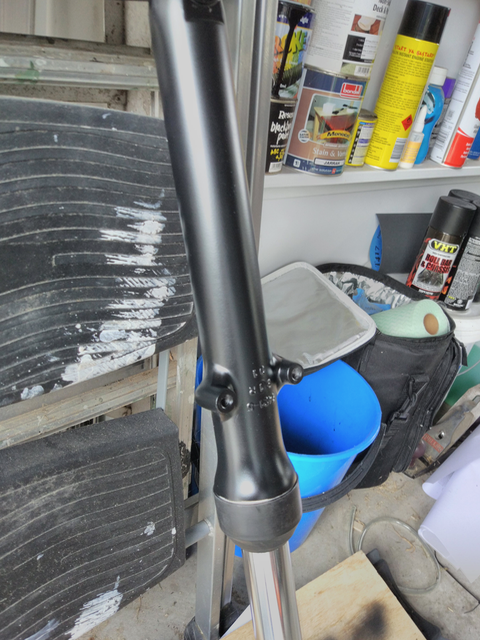 Next step was to prep and paint the front forks, once again I used VHT Chassis and roll cage paint here. I also put the shocks back together and added the dust gators.