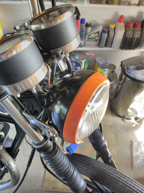 Replaced the crappy old grips and the entire front brake lever and brake fluid until as it was leaking and faulty. Put the new seat on just to see what it looks like, still need to cut the frame and add the rear loop. Also painted and replaced the plastic sprocket cover(Not sure if this is what it is called.)